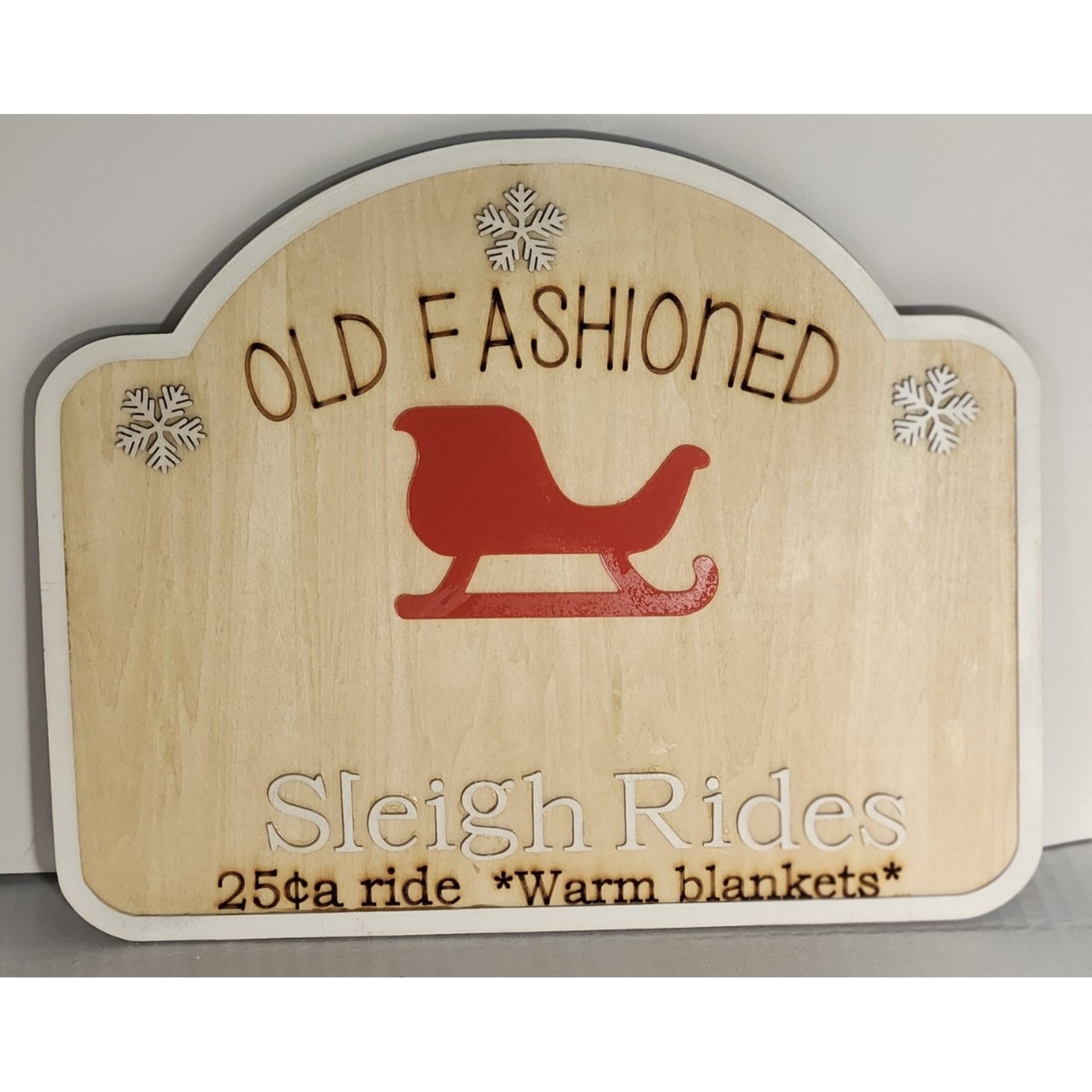Step back in time with this rustic wooden sign that celebrates the charm of old-fashioned sleigh rides. Featuring engraved lettering, snowflake accents, and a bold red sleigh, this handcrafted piece brings cozy nostalgia to your holiday décor. Perfect for hanging in your home, cabin, or entryway, it captures the magic of winter traditions.